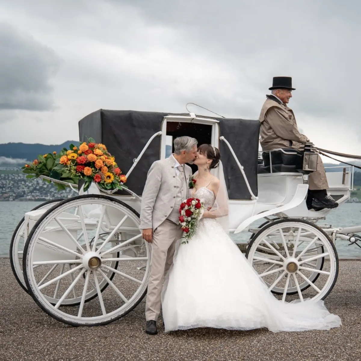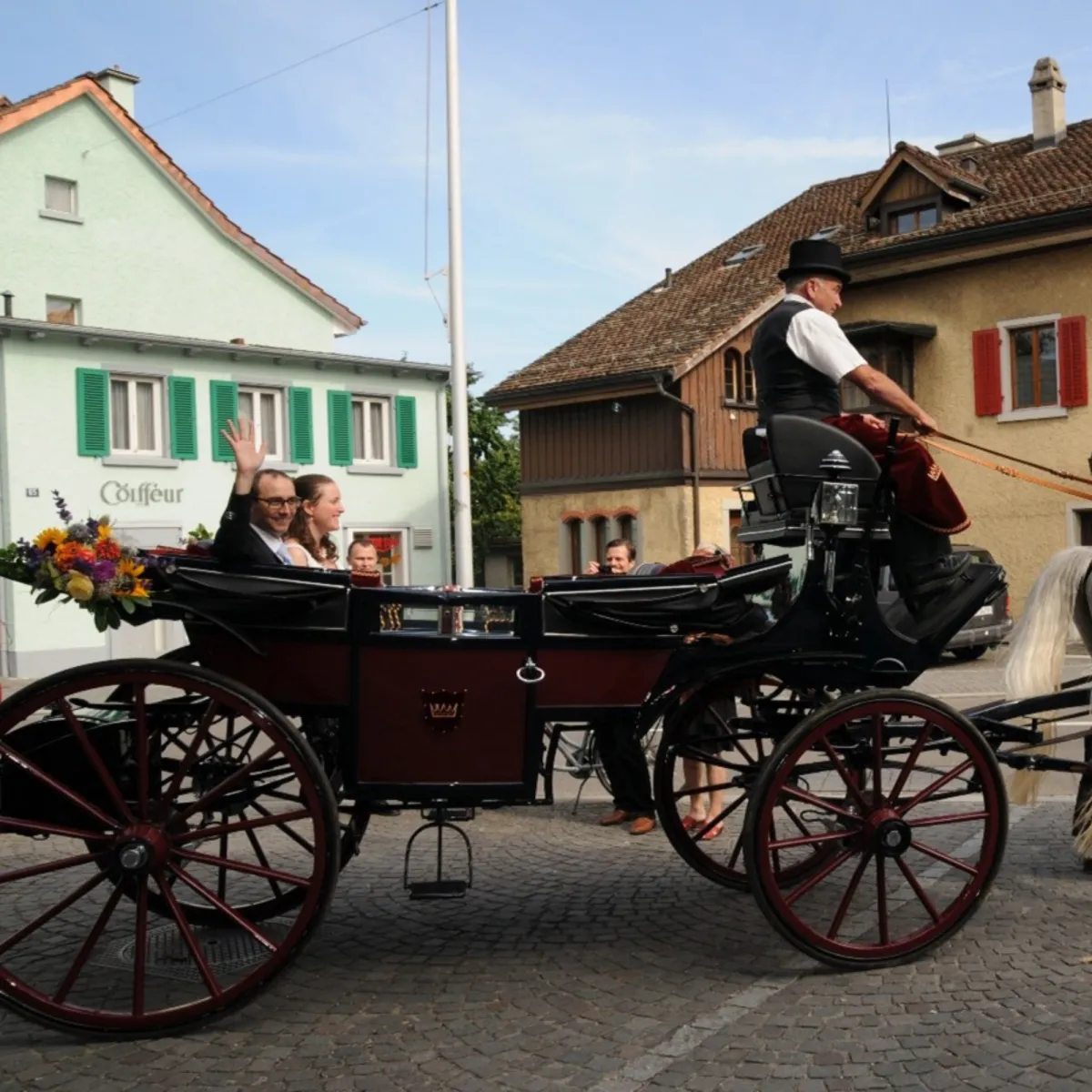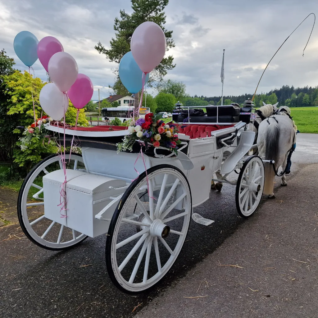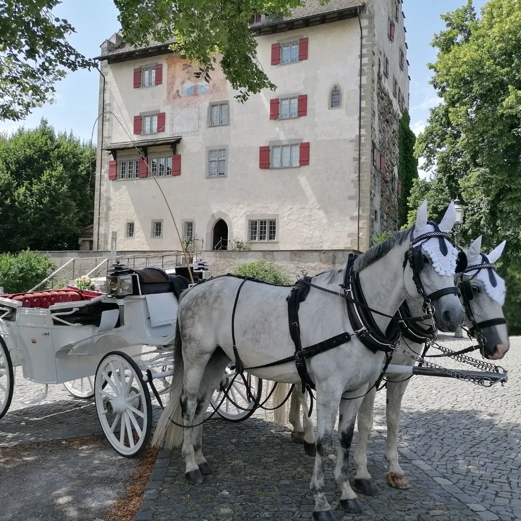 Lassen Sie die Hektik hinter sich. Geniessen Sie die ersten Minuten als Ehepaar in der würdevollen Stille einer prachtvollen Kutsche – ein Erlebnis, das bleibt.