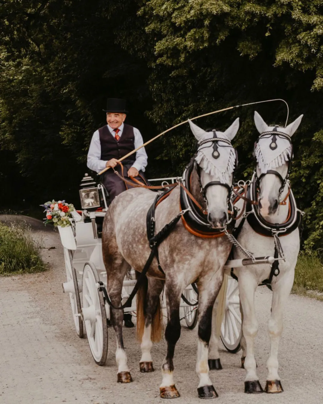Wenn es um das Kutschenfahren geht, macht Christian niemandem etwas vor. Als diplomierter Meisterlandwirt unterstützt er seine Tochter mit jahrzehntelanger Erfahrung. Seine grösste Leidenschaft ist der Fahrsport – mit ruhiger Hand und sicherem Blick lenkt er Sie stilvoll ins Eheglück.